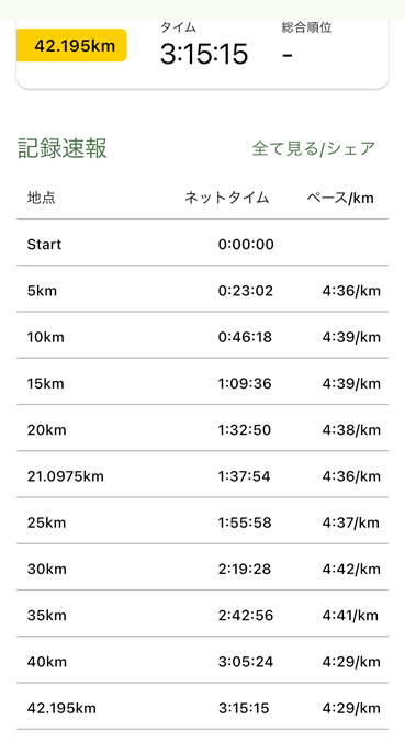 記録速報にある通り、36~37km辺りからペースアップすることができました。